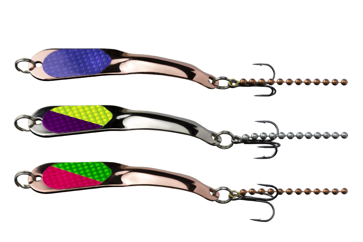 Iron Decoy lures are available in a variety of species-specific lures, and boasting an array of vibrant color combinations, it caters to the nuanced preferences of different fish species. These lures have versatile applications which can be used for casting, jigging through the ice and open trolling settings.