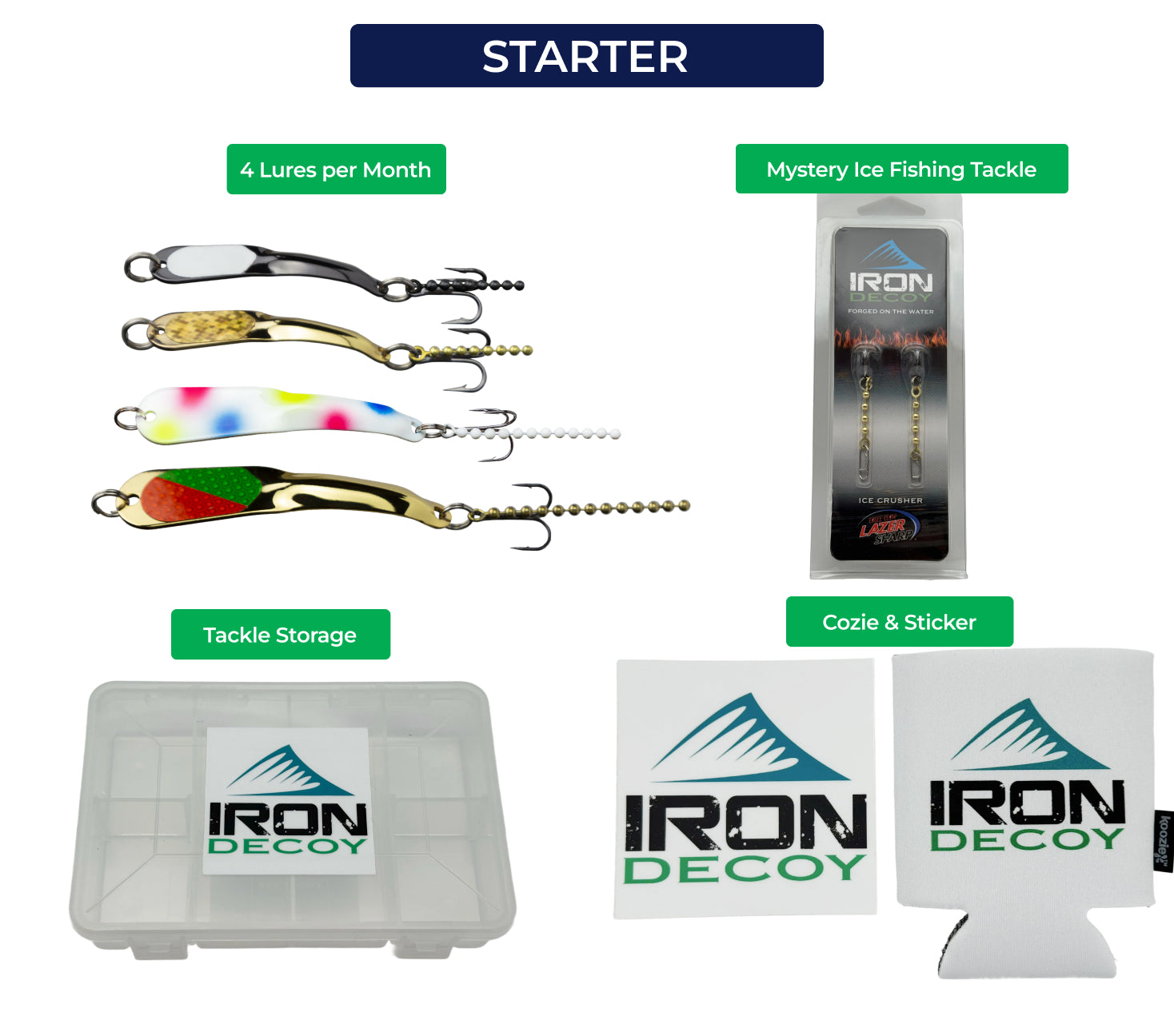 Get your package delivered monthly and always have the right ice fishing tackle at the right time, all season long. You’ll receive exclusive savings and extra perks like specialty items and free gifts — depending on your tier. Stay stocked, stay ready, and make every ice fishing trip count.